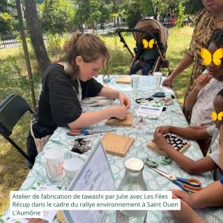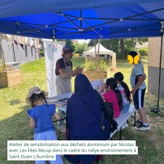 (Re)dĂ©couvrir son quartier de maniĂšre ludique grĂące Ă des activitĂ©s Ă©coresponsables : c’est ce qui a Ă©tĂ© proposĂ© aux habitant.es du Parc Le Notre Ă travers un rallye environnement animĂ© par Les FĂ©es RĂ©cup et des animateur.ices engagĂ©.es et passionnants : Laetitia, Nicolas, Lilou, Julie, Virginie et MaĂŻtĂ©. L’objectif de ce rallye ? Sensibiliser sur la gestion des dĂ©chets et du tri dans la rĂ©sidence de maniĂšre ludique et joyeuse. GrĂące aux partenaires des FĂ©es RĂ©cup sur cette Ă©dition, un pique nique anti gaspi a pu ĂȘtre organisĂ© et des goodies zĂ©ro dĂ©chet ont pu ĂȘtre distribuĂ©s aux participant.es. Un grand merci Ă Topinamour, l’association RĂ©So, Ma Bonne Etoile, la Sauvegarde 95, la Bande MagnĂ©tique & la CommunautĂ© d’agglomĂ©ration de Cergy Pontoise pour leur participation prĂ©cieuse !